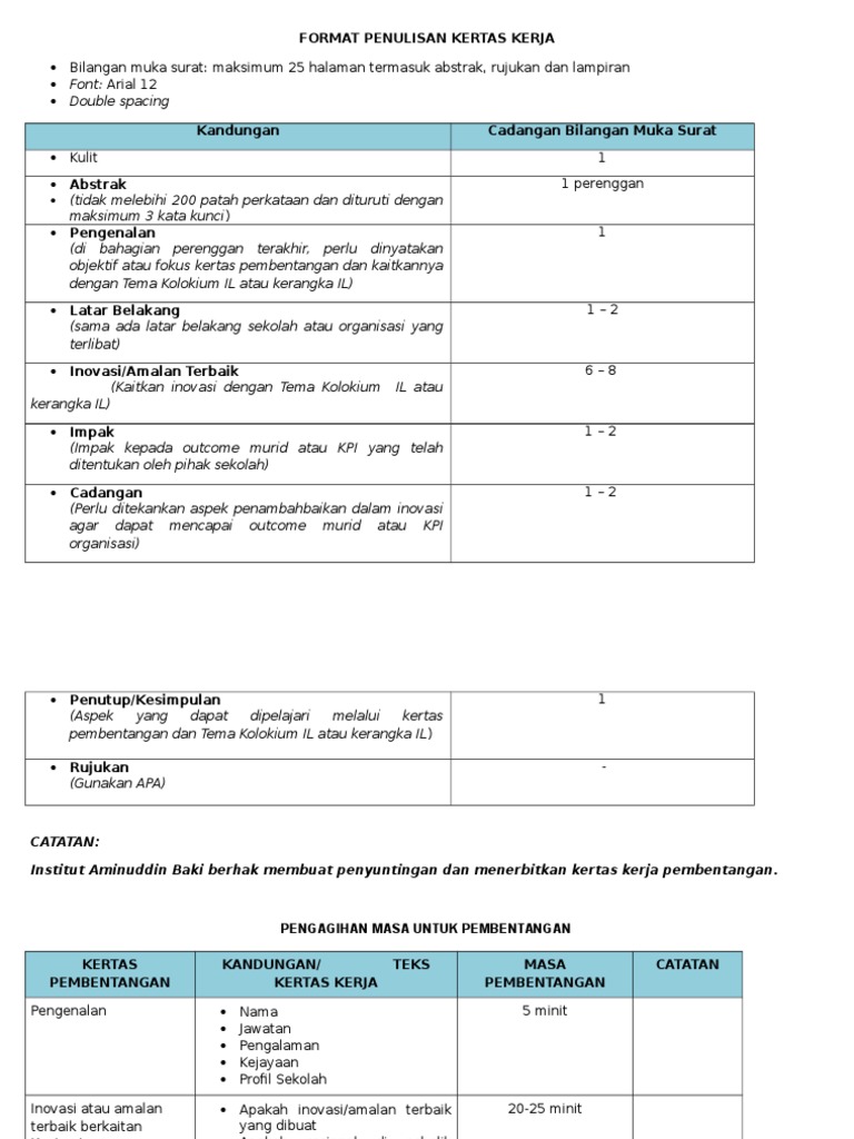 Format Kertas Kerja Dan Format Pembentangan Pdf